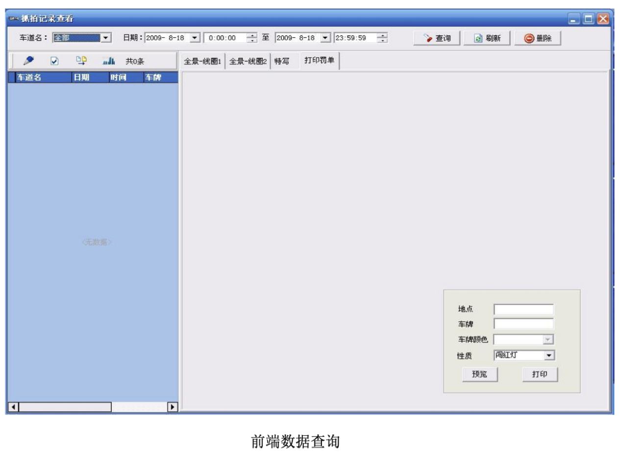 1.數據管理模塊。主要實現對數據(圖片、記錄和錄像)的查詢、統計、導出和打印等功能,實時了解各個路段的違法車輛情況和車流情況。