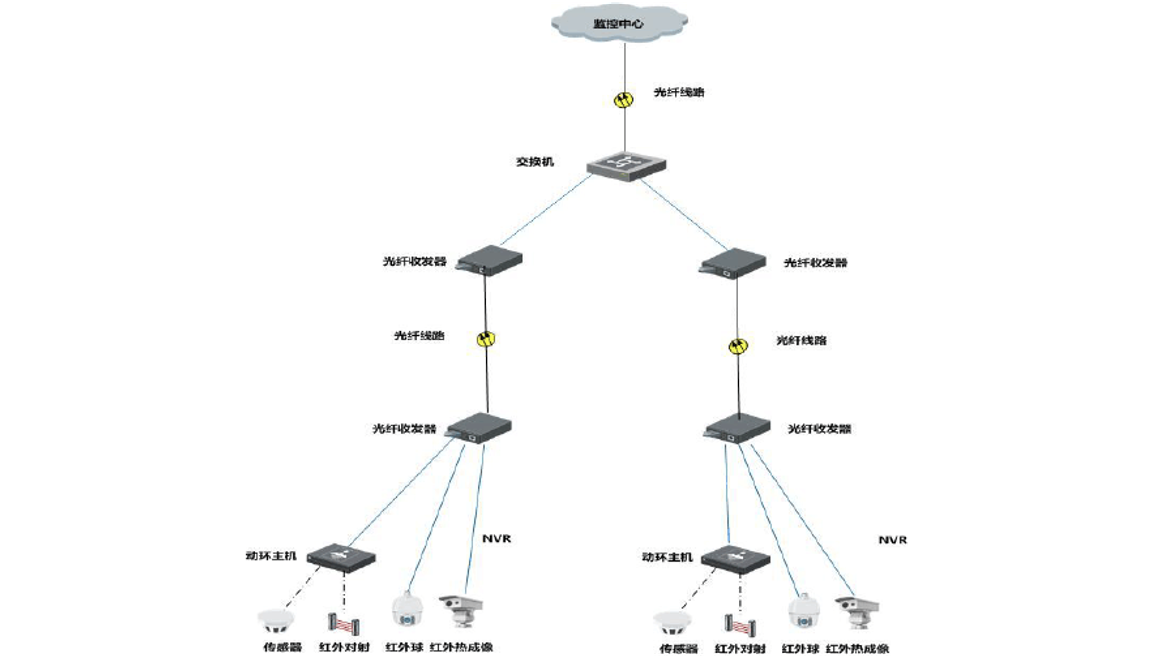 傳輸網絡可采用光纖傳輸網絡,可將攝像機、鏡頭拍攝的現場圖像實時傳輸到指揮中心。