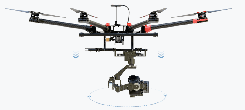 全新的懸掛設計以及電機減震設計,大大降低云臺系統的震動,更利于拍攝作業。新電池托盤位置設計,方便用戶安裝電池,電池更加穩固。云臺安裝架下移設計,集合系統標配收放起落架,給鏡頭以更廣闊的拍攝視角。