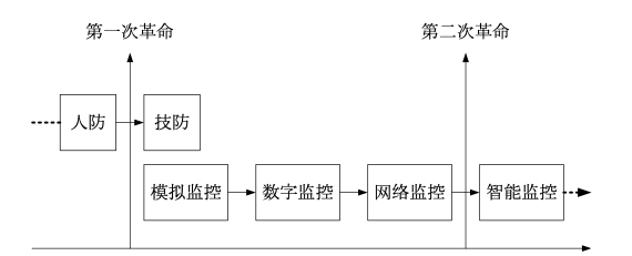 智能化是視頻監控技術發展的必然趨勢,尤其是整合了多頻圖像處理技術、模式識別技術,智能化是安全防范行業從人防向技防轉變的第一次革命之后的又一次革命,如圖所示。