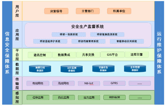 該監(jiān)管系統(tǒng)包括:橋梁一張圖系統(tǒng)、橋梁檔案管理、橋梁健康監(jiān)測、橋梁巡查養(yǎng)護(hù)、智能移動(dòng)應(yīng)用等5個(gè)子系統(tǒng),主要實(shí)現(xiàn)橋梁檔案的信息化管理以及信息數(shù)據(jù)的動(dòng)態(tài)更新,提高日常養(yǎng)護(hù)作業(yè)效率。同時(shí),同步對市城區(qū)14座重點(diǎn)橋梁,安裝在線監(jiān)測設(shè)施,全面掌握,實(shí)時(shí)監(jiān)測橋梁的運(yùn)行動(dòng)態(tài),確保橋梁安全穩(wěn)定運(yùn)行。