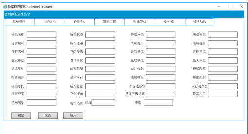 系統(tǒng)具有提供橋梁信息檔案,查看每個(gè)橋梁的全部信息的功能。提供的信息包括橋梁的靜態(tài)信息和橋梁的動(dòng)態(tài)信息。