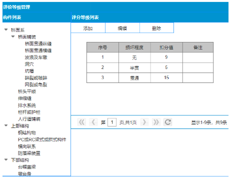 系統(tǒng)具有對每類橋梁需養(yǎng)護(hù)的部件進(jìn)行預(yù)設(shè)置,并且支持按照重要程度進(jìn)行分類。