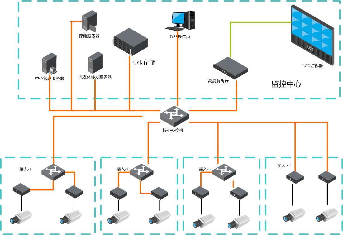 視頻監(jiān)控系統(tǒng)主要實(shí)現(xiàn)管理人員集中實(shí)時(shí)掌握各重要區(qū)域的現(xiàn)場(chǎng)狀態(tài),同時(shí)對(duì)犯罪分子起到一定的威懾作用。視頻監(jiān)控系統(tǒng)是一種直觀的防范手段,是人員視覺防范的一種延伸,可以很好地對(duì)其他防范手段進(jìn)行補(bǔ)充。它提供的信息更豐富、更便于對(duì)事件的判斷和處理。