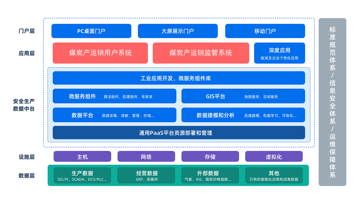 實現(xiàn)綜合看板、煤礦生產(chǎn)中心、煤炭承運中心、市煤銷售中心、綜合政務(wù)中心、運營支持中心等6大應(yīng)用功能建設(shè)。