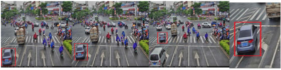 系統(tǒng)根據(jù)配置好的圖片合成和信息疊加模式,將依次抓拍的三張圖片排列組合,并與車輛局部放大的特寫圖片合成為一張完整的圖片,輸出完整的違法占用非機動車道全過程。