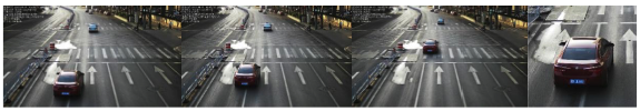 系統(tǒng)根據(jù)配置好的圖片合成和信息疊加模式,將依次抓拍的三張圖片排列組合,并與車輛局部放大的特寫圖片合成為一張完整的圖片,輸出完整的機動車不按車道行駛?cè)^程。