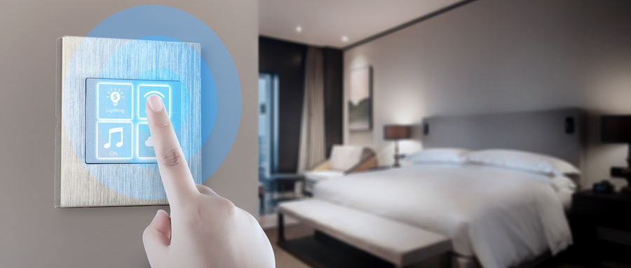 主臥:智能情景面板+背景音樂+起夜燈+環境監測+緊急按鈕
