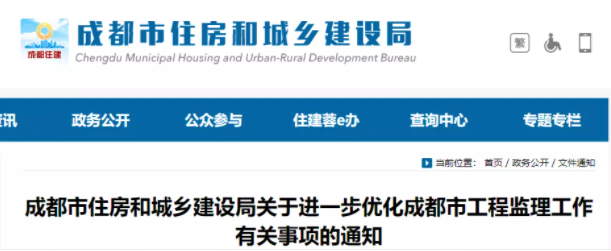 為進一步深化“放管服”改革,持續優化營商環境,根據《國務院辦公廳關于全面開展工程建設項目審批制度改革的實施意見》(國辦發〔2019〕11號)《成都市人民政府關于印發成都市關于進一步深化工程建設項目審批制度改革實施方案的通知》(成府發〔2020〕6號)等相關規定,現就進一步優化我市房建和市政工程監理工作的有關事項通知如下。
