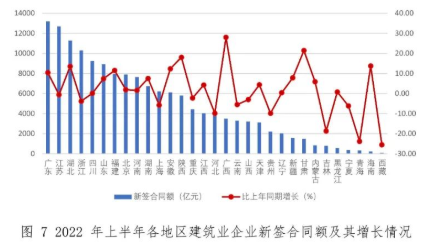 新簽合同額超過6000億元的還有四川、山東、福建、北京、河南、湖南、上海、安徽等8個地區。新簽合同額同比增長最快的是廣西,達到了 28.0%。