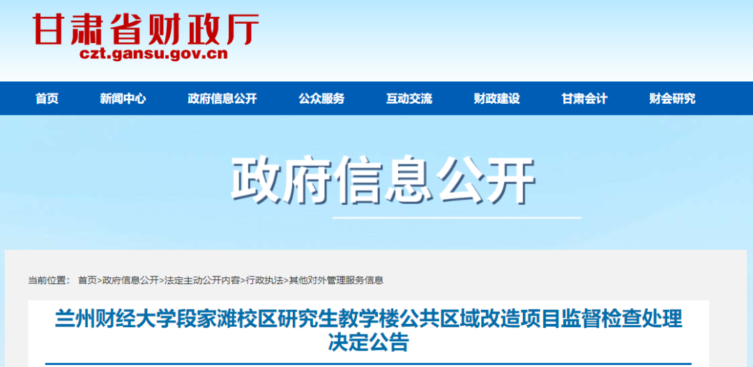 我機(jī)關(guān)依法對2022年6月22日收到的對“蘭州財(cái)經(jīng)大學(xué)段家灘校區(qū)研究生教學(xué)樓公共區(qū)域改造項(xiàng)目”采購文件的舉報(bào)進(jìn)行了監(jiān)督檢查。